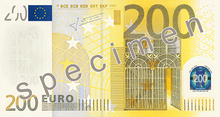 Bestanden van biljetten waarbij het woord 'SPECIMEN' diagonaal is afgedrukt zijn vrij te downloaden. Dit ontwerp is duidelijk te onderscheiden is van echt geld.
