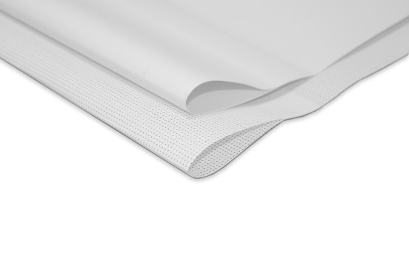 Dit materiaal kan gebruikt worden in roll up banners als premium en luxe alternatief voor 510 grams scheurvast spandoek. Het materiaal is scheurvast en heeft een grijze achterzijde waardoor licht er niet doorheen kan schijnen vanaf de achterkant. Dit materiaal kan niet voorzien worden van een extra afwerking.