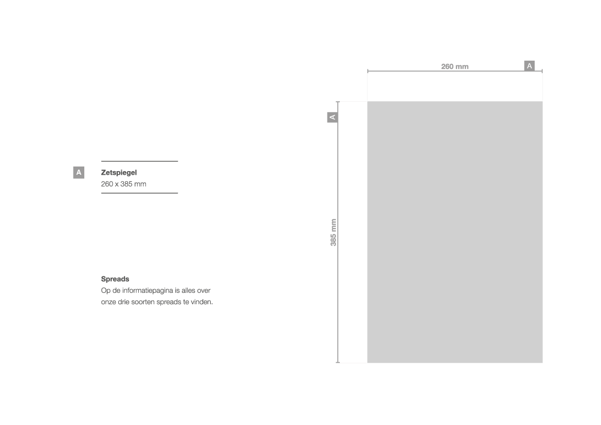 Kranten drukken wij op tabloidformaat. Voor het drukken ervan hebben wij een juist drukbestand nodig. Het uiteindelijke formaat van de krant, noemen we een bladspiegel. Het bedrukte deel van een krantenpagina noemen we een zetspiegel. Een drukbestand kan drie soorten zetspiegels bevatten: