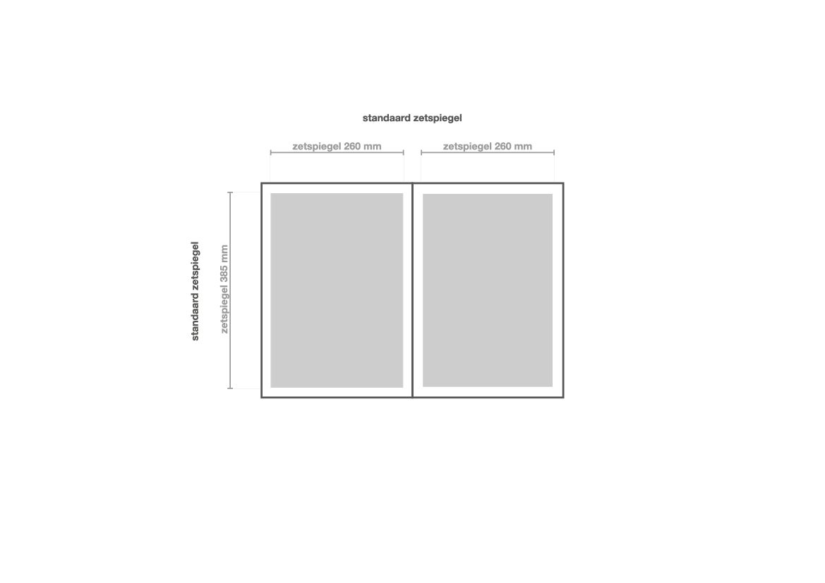 Bij de standaard zetspiegel lopen de bedrukte delen van de twee opengeslagen pagina’s niet in elkaar over. De twee pagina’s zijn beide gedrukt op een eigen vel. Vervolgens worden de pagina’s naast elkaar ingedeeld in de tabloid.
