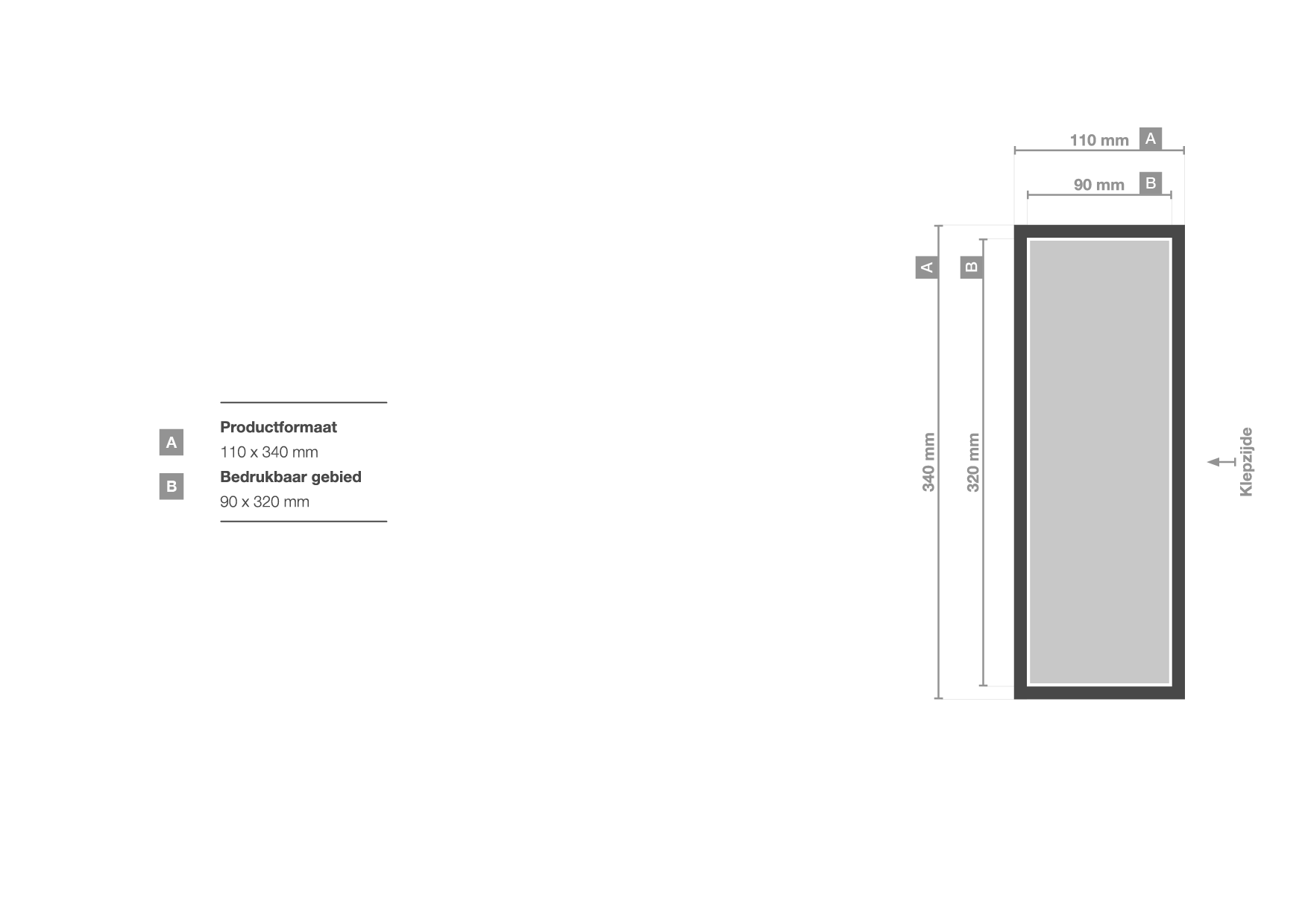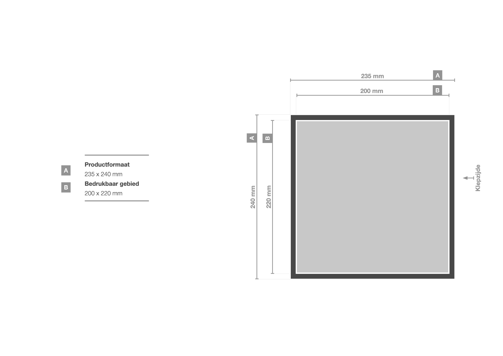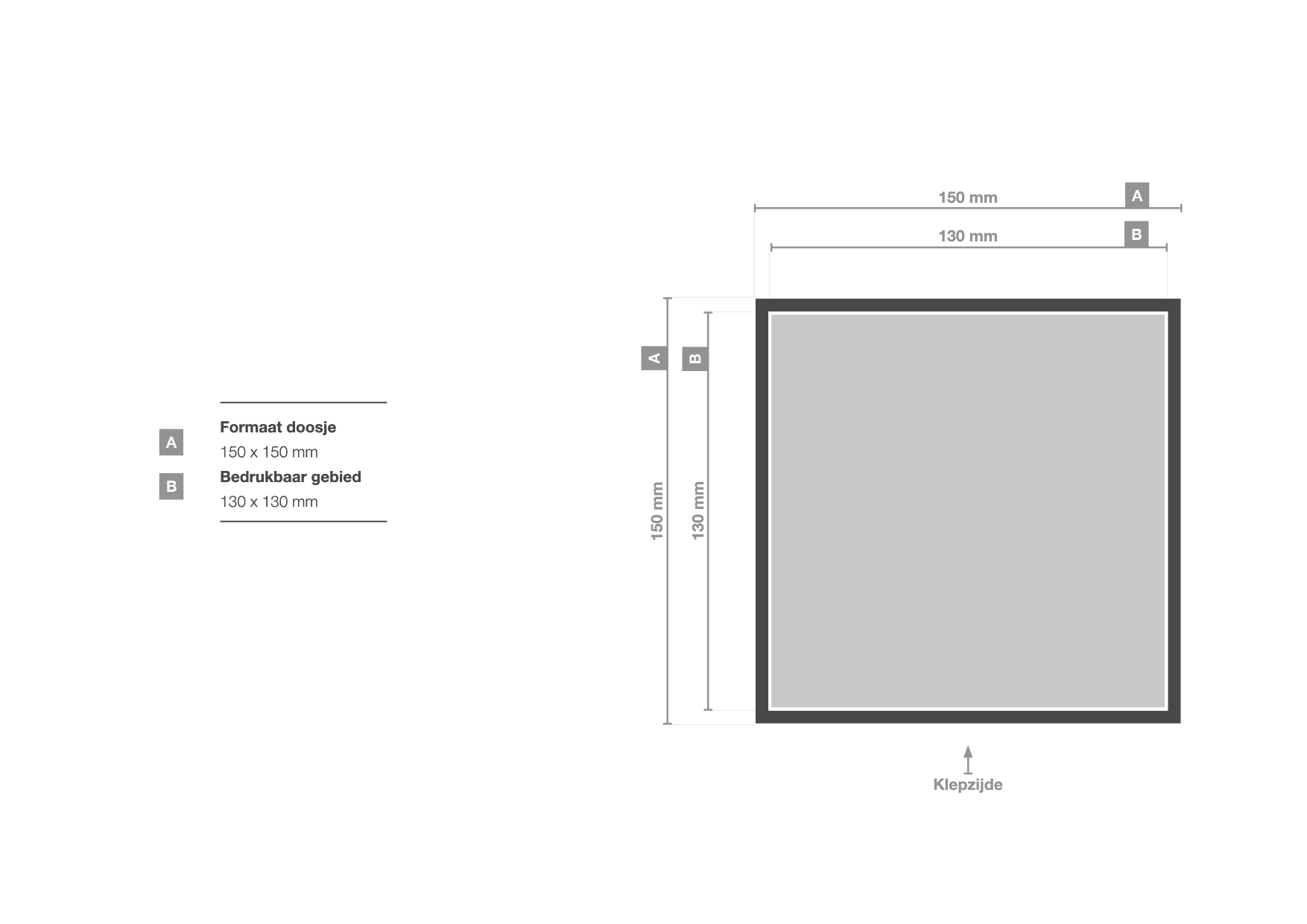 De magneetdozen zijn beschikbaar in verschillende formaten en bedrukbare gebieden. Zie onderstaand overzicht voor meer informatie.