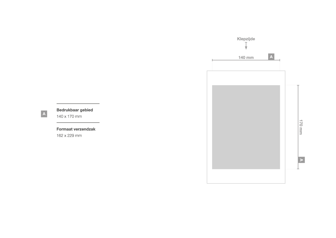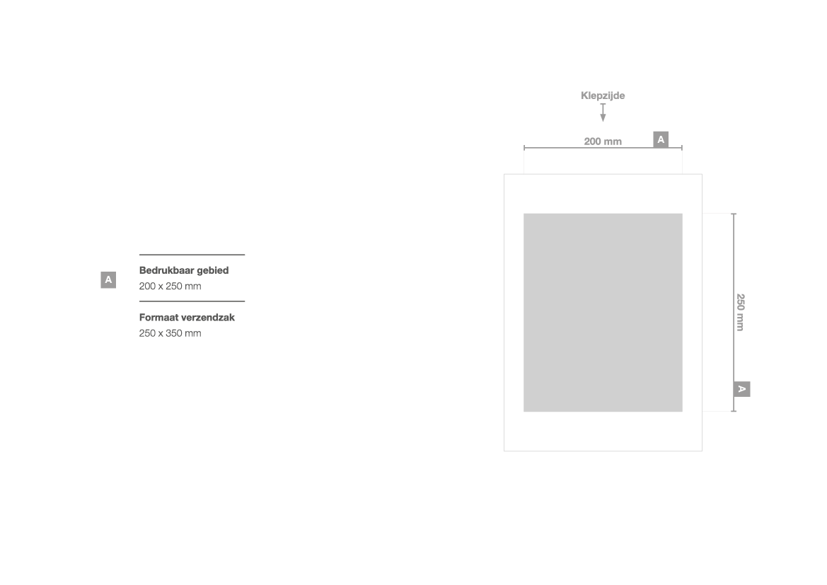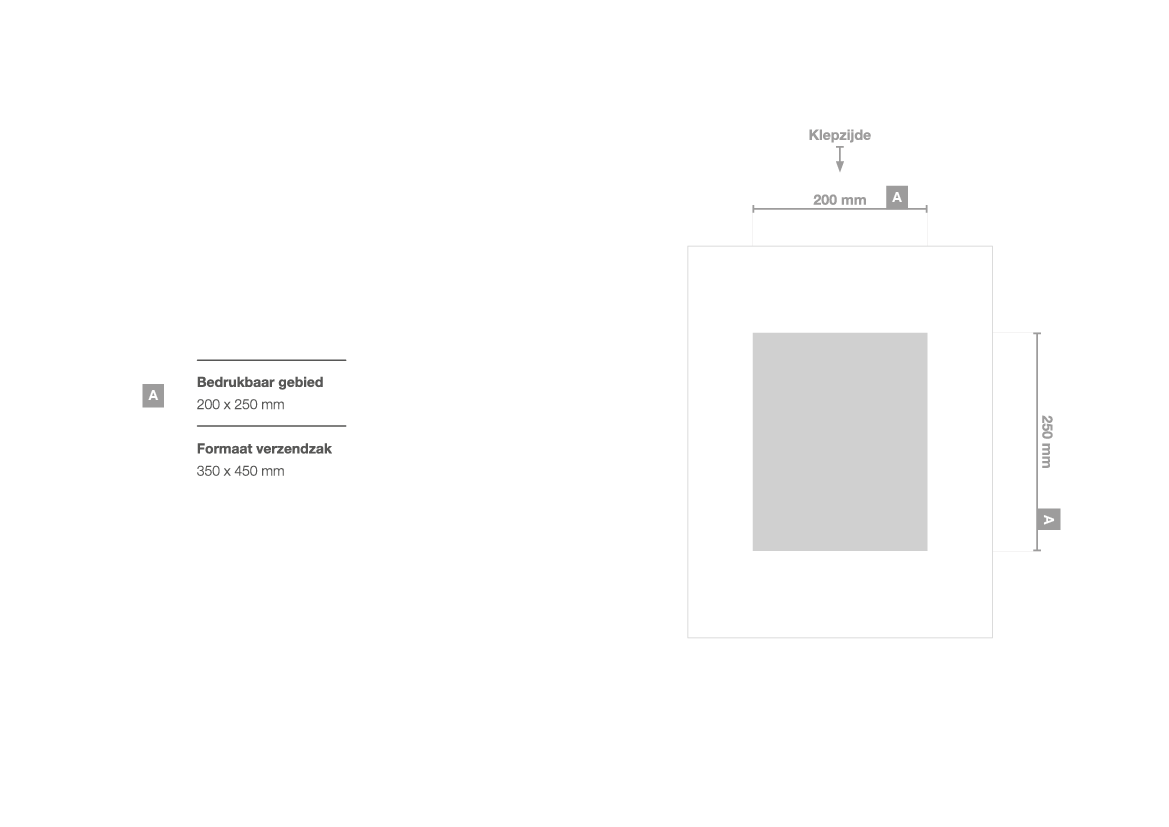 | Formaat verzendzakken | Bedrukbaar gebied | Aanleveren | |