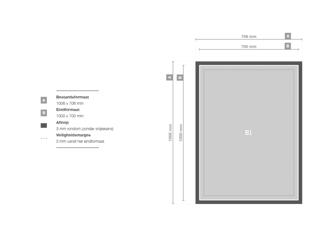 Voor alle populaire posterformaten hebben we posterrails beschikbaar. Hieronder staan de posterformaten weergegeven met de bijbehorende breedte van de posterrails. De werktekeningen zijn alleen van toepassing als je posters meebesteld. Voor losse posterrails hoef je geen bestand aan te leveren.