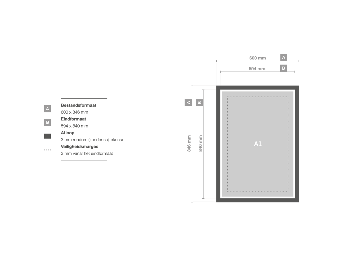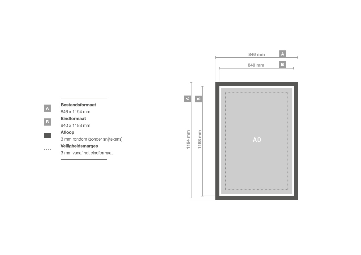 De formaten die het meest bij ons worden besteld, vind je hieronder inclusief werktekening om je eigen poster mee te designen: