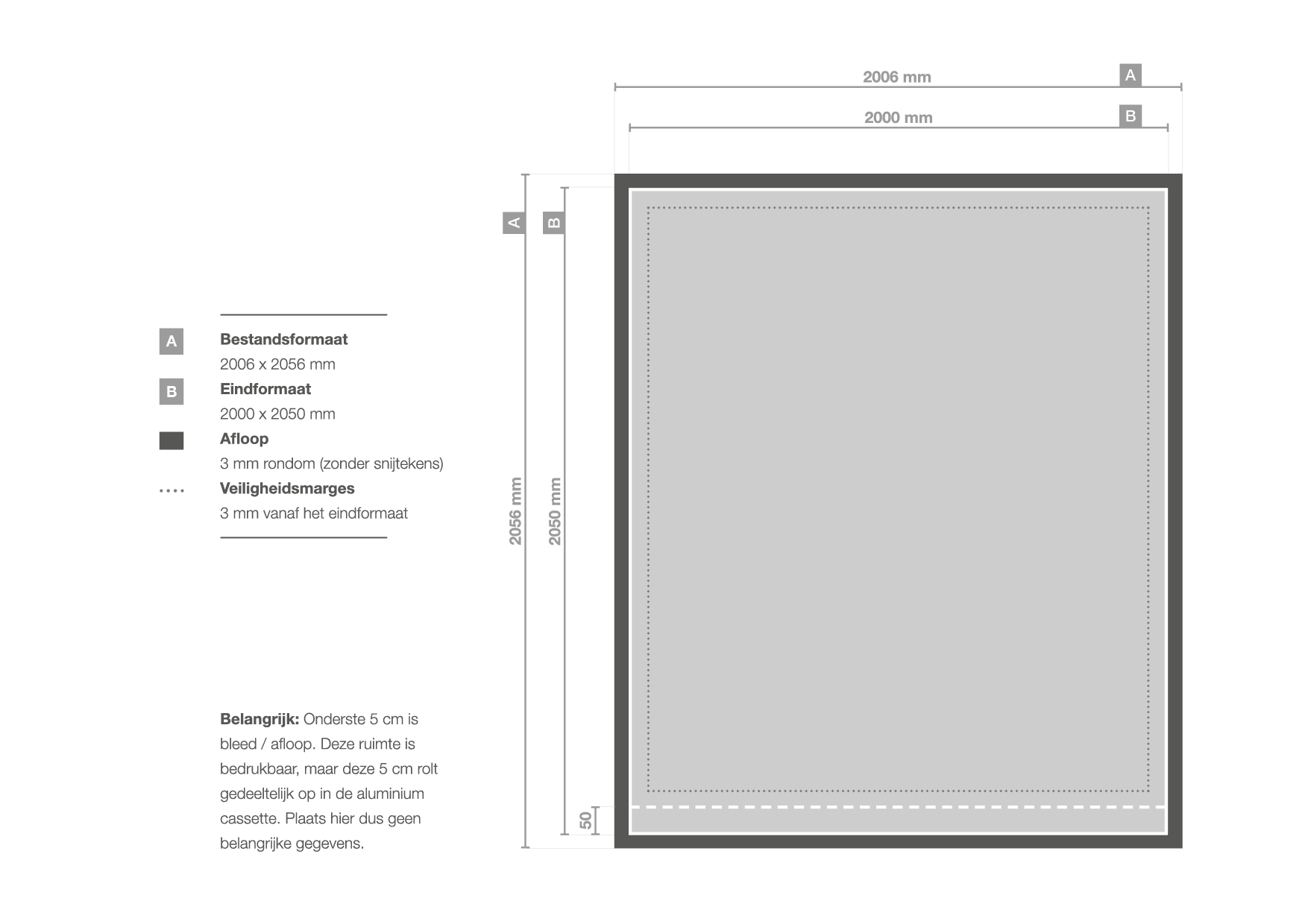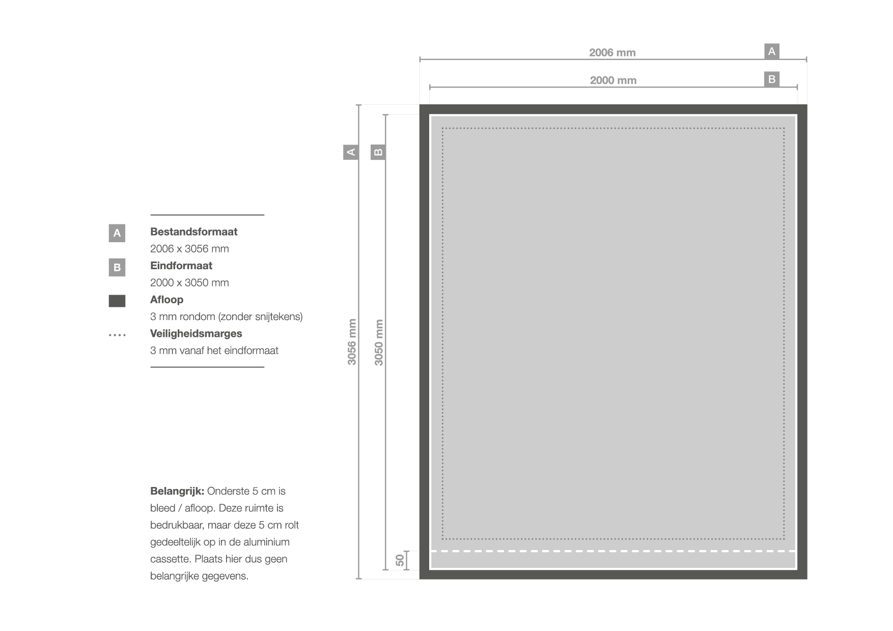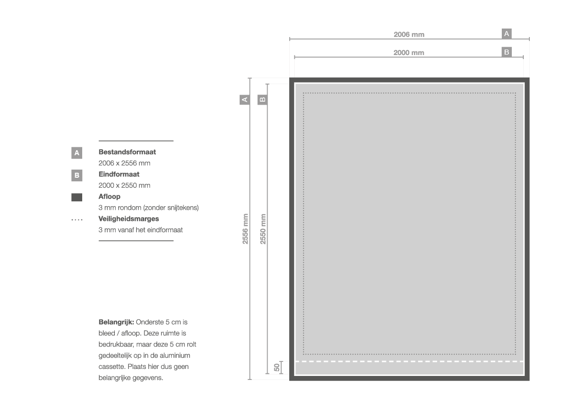 Dit model heeft niet voor niets de naam premium rollup banner XL. Deze kun je namelijk bestellen tot maar liefst 305 cm hoog! De breedte is in alle gevallen 200 cm. Let op: de onderste 5 cm verdwijnen in de case en zijn dus niet zichtbaar.