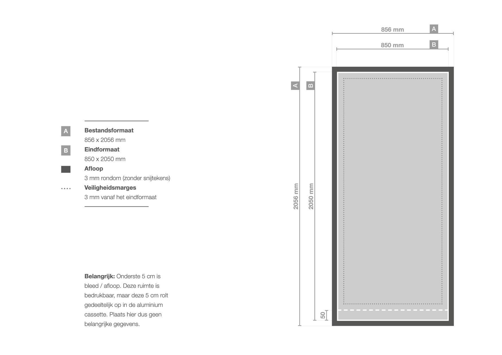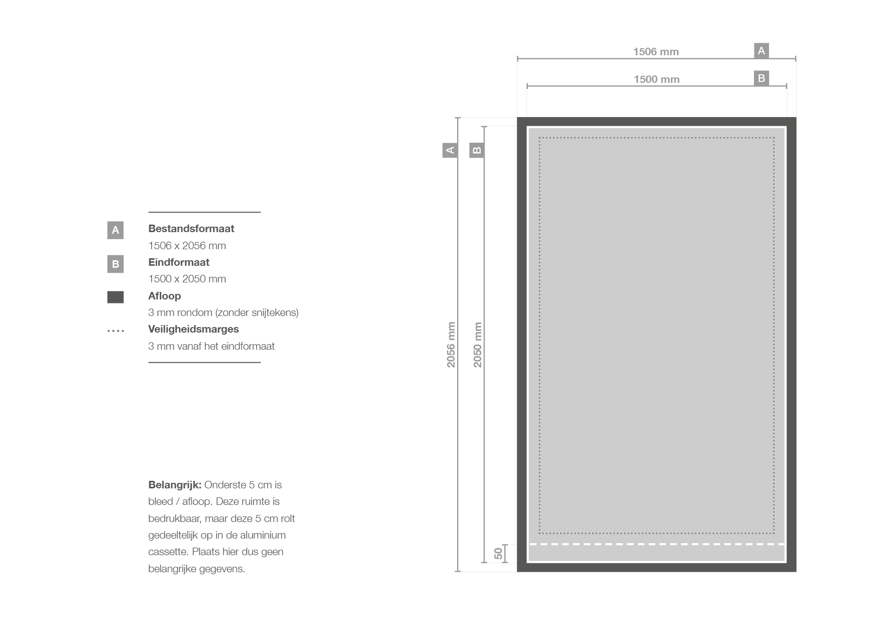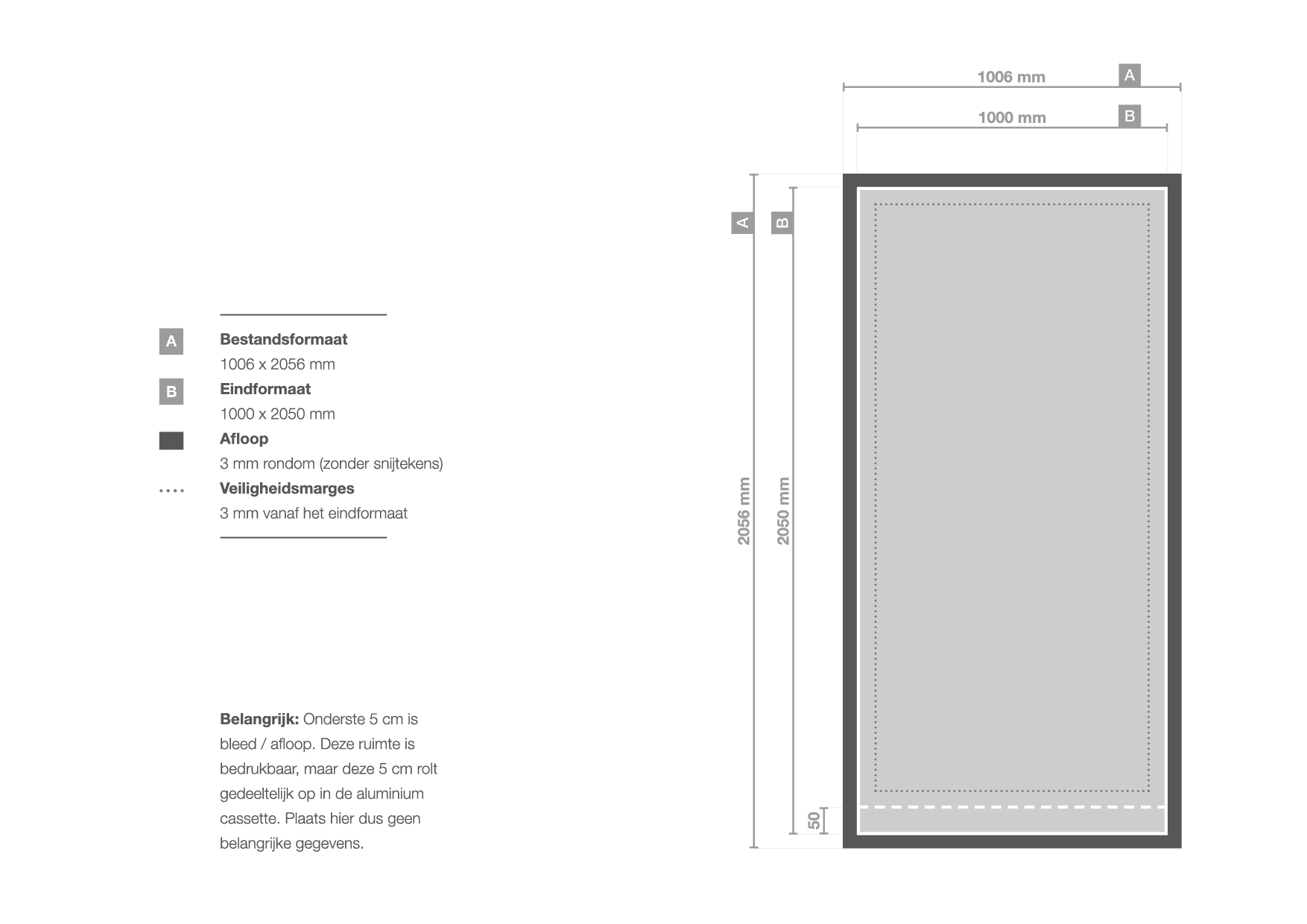 Dit model heeft niet voor niets de naam premium rollup banner XL. Deze kun je namelijk bestellen tot maar liefst 305 cm hoog! De breedte is in alle gevallen 200 cm. Let op: de onderste 5 cm verdwijnen in de case en zijn dus niet zichtbaar.