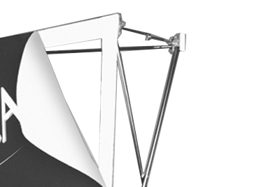 Het vouwsysteem is makkelijk op te zetten. Alle kliksluitingen verbinden en het systeem staat klaar zodat het doek gemonteerd kan worden.