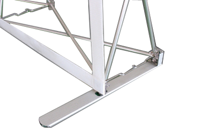 De beurswand staat stevig op 2 aluminium poten. Deze aluminium poten hebben een lengte van 50 cm, hiervan steekt 20 cm uit aan de voorkant.