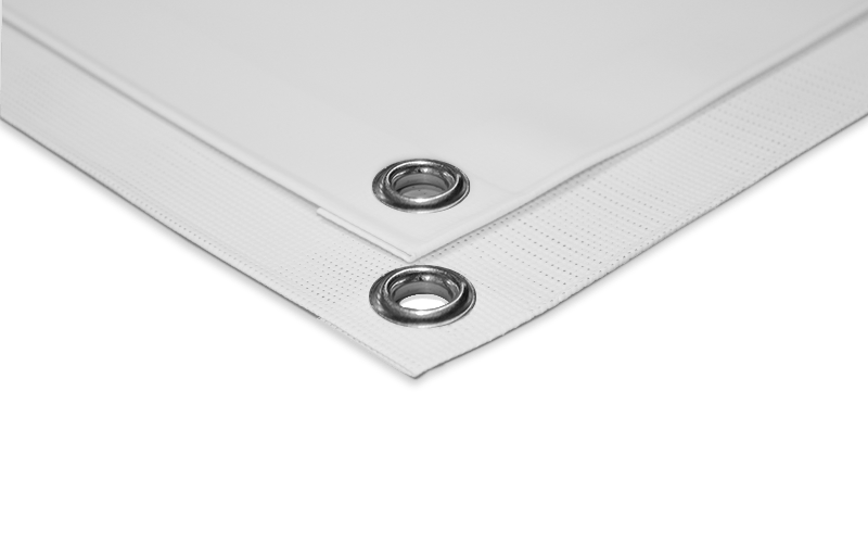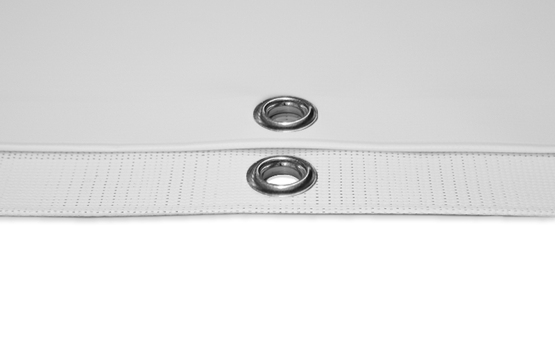 Bij deze optie zullen ook alle zijkanten van het doek omgezoomd worden en voorzien van transparante ogen van kunststof. De afstand tussen de ogen is afhankelijk van de keuze die je tijdens het bestelproces maakt. Dit kan om de 20, 30, 40 of 50 cm.